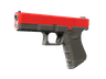 The Glock 18 is a serviceable first-round pistol that works best against unarmored opponents and is capable of firing three-round bursts. It has individual parts spray-painted solid colors in a red and black color scheme. Great on cars, better on weapons